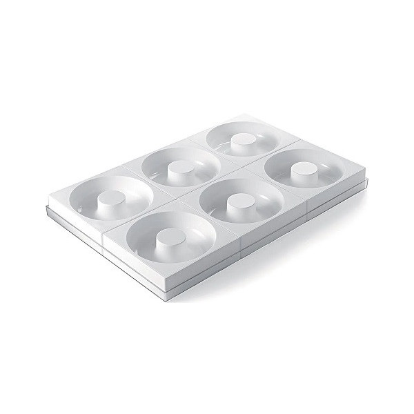 Il set composto dai 6 stampi su vassoio è ideale per creare contemporaneamente in modo pratico ed efficiente 6 semifreddi e torte a forma di ciambella o savarin.