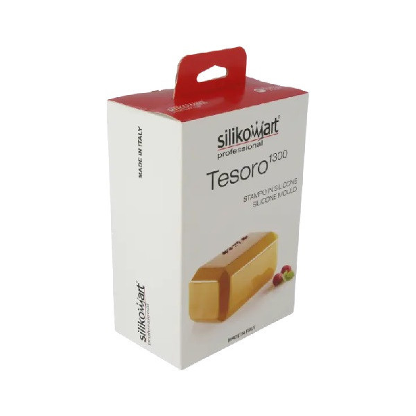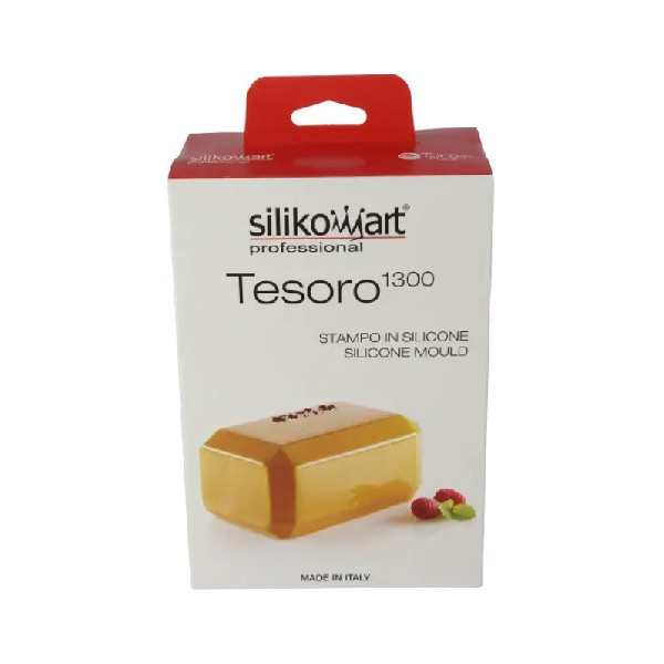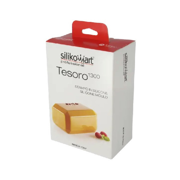 Tesoro 1300 Silikomart, è uno stampo in silicone per una preparazione, a forma di lingotto tipo: torta, torrone, blocco o lingotto di cioccolato.