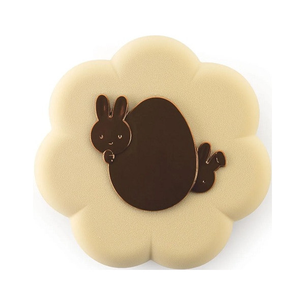 - 1 placca in plastica termoformata per decoro di cioccolato con uovo di cioccolato e conigli, a tema Pasqua e