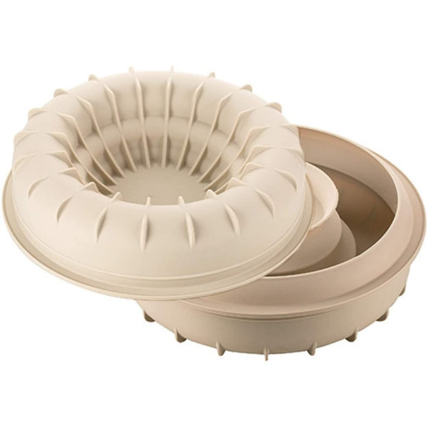 Lo stampo Arena, ha un effetto ad anelli una sovrapposti, in silicone grigio, dal diametro da 22 cm x altezza 7 cm per realizzare una delicata e preziosa decorazione.