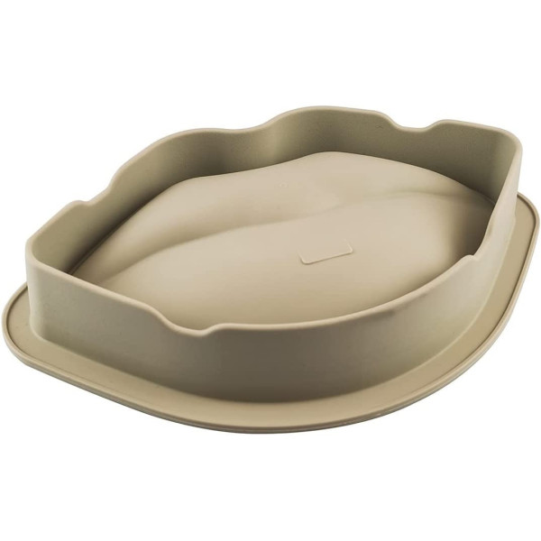 Lo stampo Bacio è uno stampo in silicone grigio da Silikomart per torte a forma di labbra, con effetto tridimensionale, lunga 25 cm, larga 15 cm ed altezza 6,5 cm