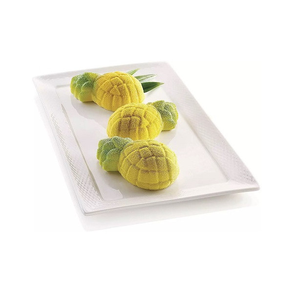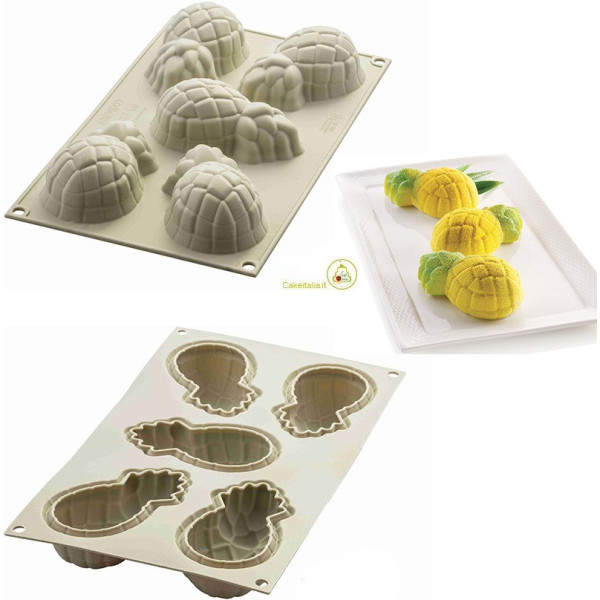 Lo Stampo Mini Ananas 3D è uno Stampo Tridimensionale in silicone lungo 10 cm, largo 5,8 cm ed alto 3,8 cm da Silikomart per semifreddi mousse e dolci monoporzione a forma di piccola ananas.