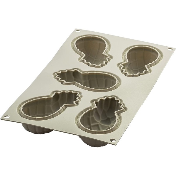 Stampo Mini Ananas in Silicone grigio seta flessibile e antiaderente realizzato in 100 % silicone liquido da Silikomart. Può essere messo direttamente dal forno al frigorifero e viceversa.