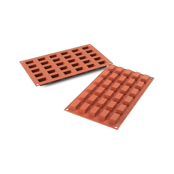 Stampo per 30 mini cakes o mini tortine, classici monoporzione rettangolari mini in silicone lunghi 30 mm, larghi 18 mm ed alti 16 mm, SF181 da Silikomart