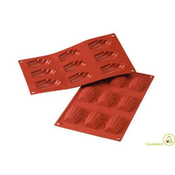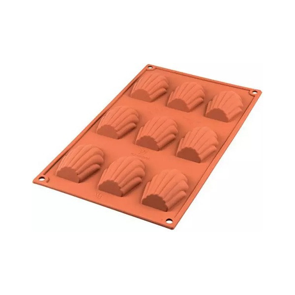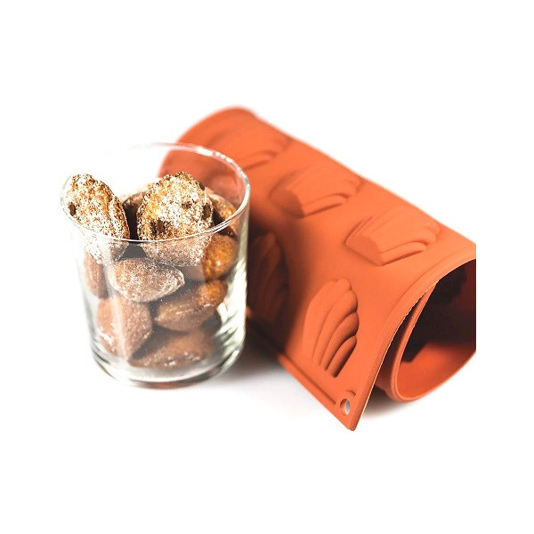 Stampo Madeleine o Maddalene in silicone da Silikomart: stampo maddalene piccole da 4,2 cm o maddalene grandi da 6,8 cm in silicone flessibile e antiaderente color terracotta