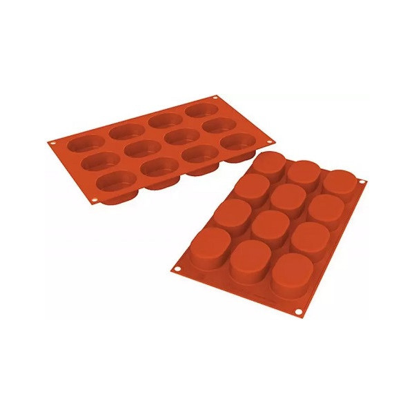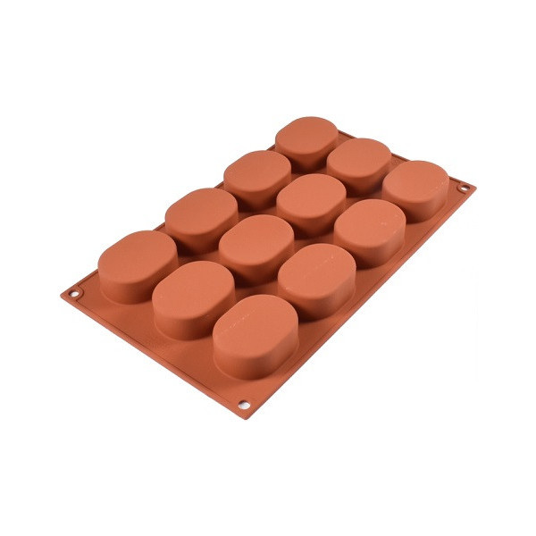 Stampo Ovals SF326 da Silikomart o stampo in silicone per Biscotti di forma ovale di 12 impronte 57 X 23 h 25 mm, ideale per preparazioni dolce o salate.