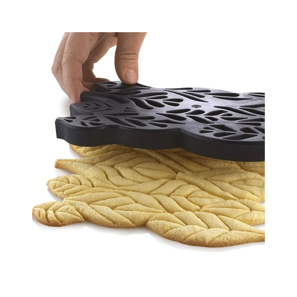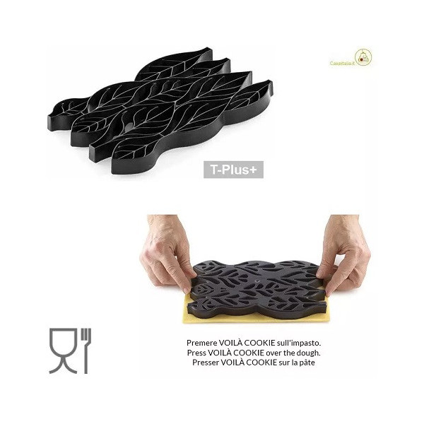 Voila' Cookie Leaves da Silikomart è una placca tagliabiscotti, uno stampo rigido a doppia funzionalità, per tagliare e cuocere direttamente in forno, usali come: