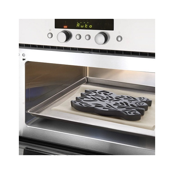 Voila' Cookie Leaves placca antiaderente per tagliare e cuocere direttamente in forno nello stampo, a forma di foglie, da 24x15xh2 cm, in materiale T-Plus+ colore nero da Silikomart