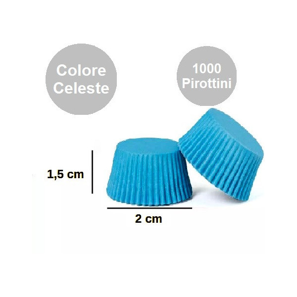 1000 Pirottini mini bon bon celesti in carta, di alta qualità, diametro 2 cm altezza 1,5 cm. Ideali per cuocere piccoli dolcetti e presentare singoli confetti.
