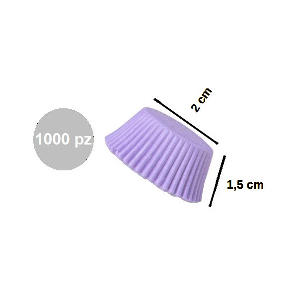 1000 Pirottini mini bon bon lilla in carta, di alta qualità, diametro 2 cm altezza 1,5 cm. Ideali per cuocere piccoli dolcetti e presentare singoli confetti.