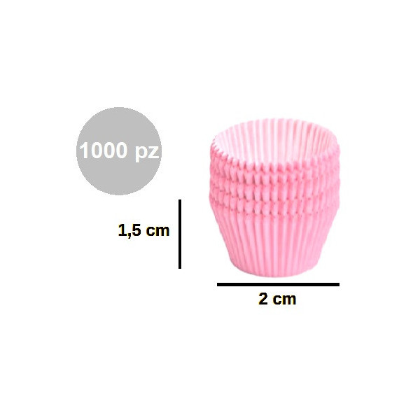 1000 Pirottini Mini Bon Bon rosa cipria in carta, di alta qualità, diametro 2 cm ed altezza 1,5 cm. Ideali come portaconfetti singoli o per cuocere e presentare piccoli dolcetti