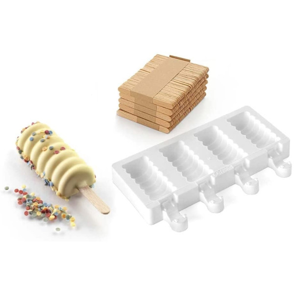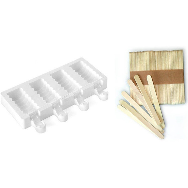 Set completo di stampo in silicone per gelato artigianale a forma di spirale, con stecchi in legno ed un ricettario.