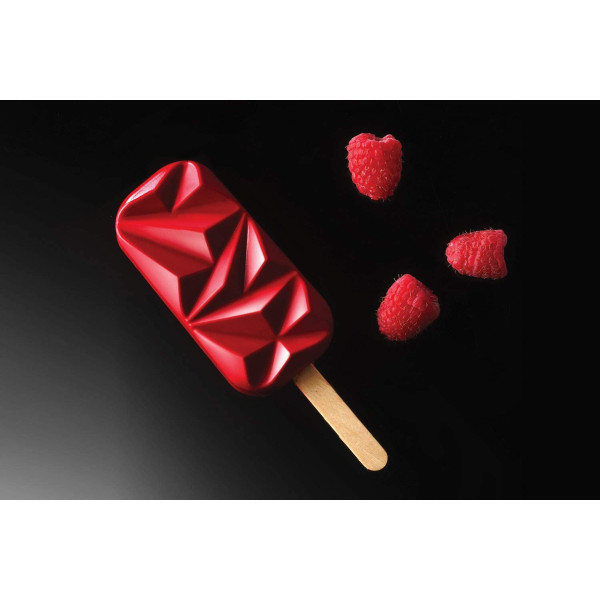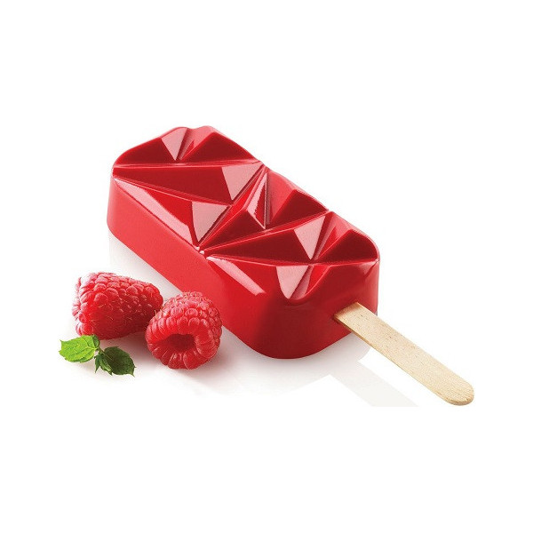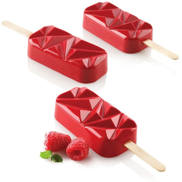 Stampi gelati Cristalli Geometrici o Shock alti 9 cm Silikomart: 2 stampi in silicone Top White + 1 vassoio in ABS da 30 x 40 cm (colore bianco) + 50 bastoncini in legno di faggio, da Silikomart.