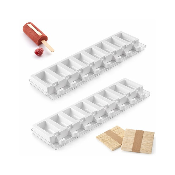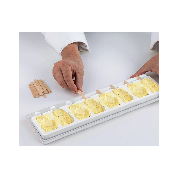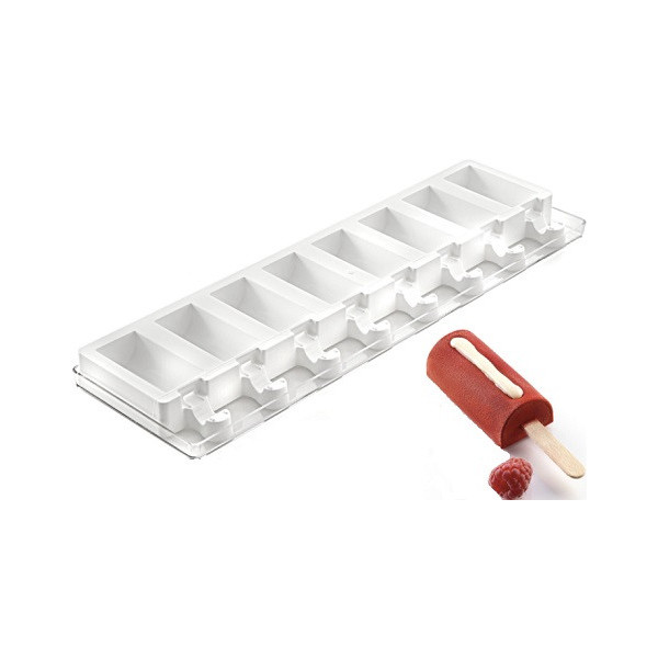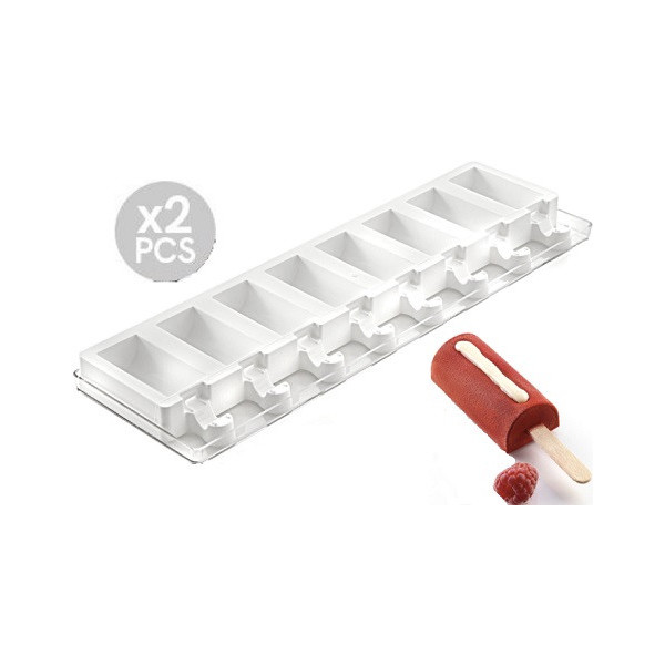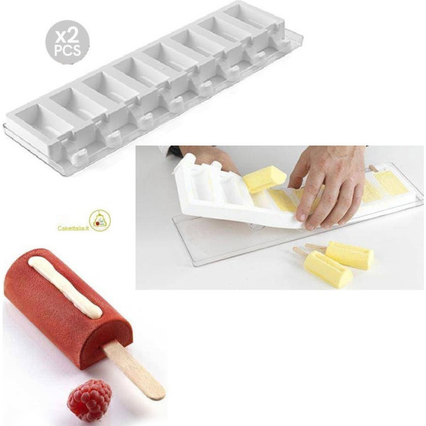 - 2 Stampi mini Gelati Chic alti 7 cm in silicone Top White, ogni stampo ha 8 cavità, lunga 69 mm, larga 38 mm ed alta 18 mm,