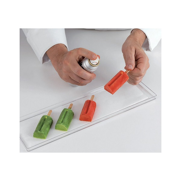 In merito alla Linea Steccoflex Silikomart: le fondamenta della linea sono stampi in silicone progettati per realizzare prodotti “su stecco” (gelati, semifreddi, mousse, snack dolci e salati).