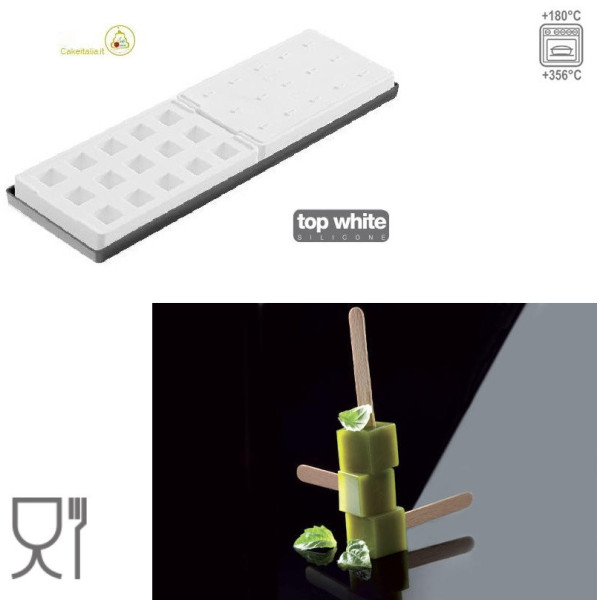 - 2 stampi in silicone Top White da 15 cavità ognuno, per un totale di 30 mini gelati Kube o mini cubi da 2 cm,