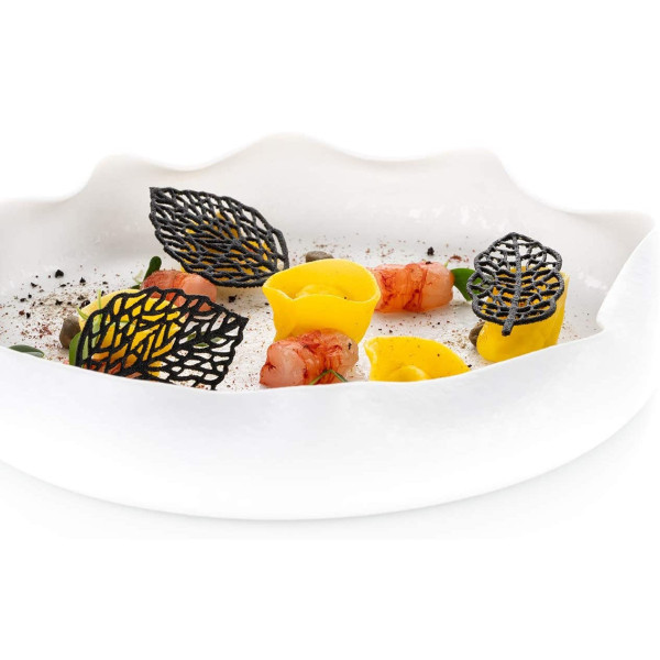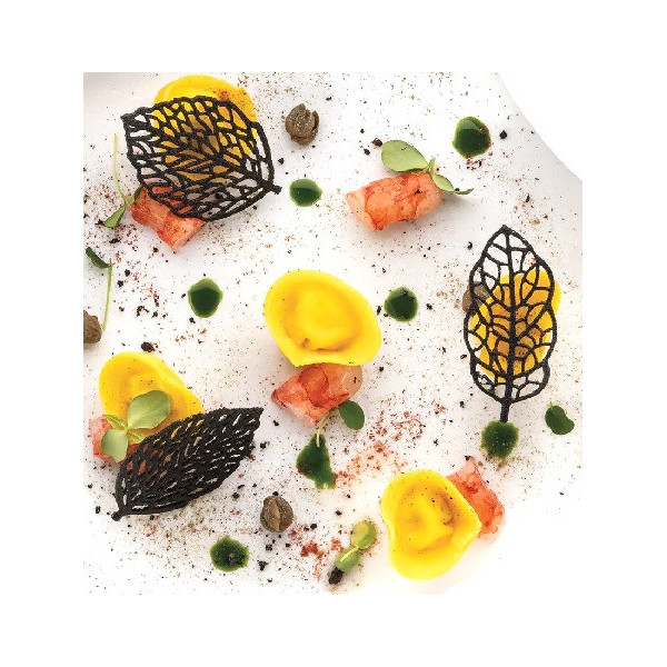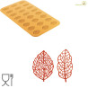 Stampo Foresta, in Silicone giallo Linea Naturae di Silikomart, da 21 impronte di 2 tipi di foglie di Foresta, ideali per decorare preparazioni sia dolci che salate in versione cotte o semifreddi. Ideale decorazione sopra per piccoli dessert, pasticceria mignon e prodotti da forno, gelati, zucchero e cioccolato.