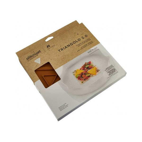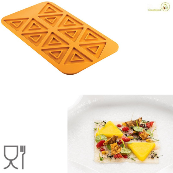 Stampo Triangolo 2.0 o 3.0 in silicone giallo Silikomart: 12 impronte di triangoli suddivise o in 2 o in 3 piccoli triangoli, ideali per decorare preparazioni.