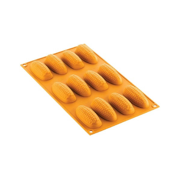 Stampo Pannocchia 20 in Silicone giallo Silikomart Linea Naturae: 12 impronte che richiamano la forma naturale della Pannocchia, ideali per preparazioni dolci e salate, versione cotte o semifreddi.
