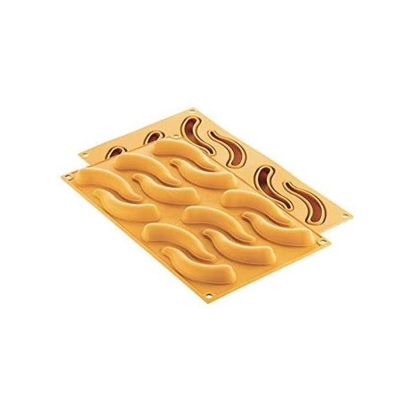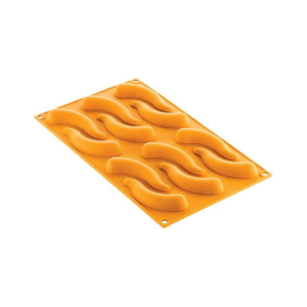 Stampo Baccello 13 in Silicone giallo Silikomart Linea Naturae: 10 impronte che richiamano la forma naturale del baccello di piselli, ideali per preparazioni dolci e salate, versione cotte o semifreddi.