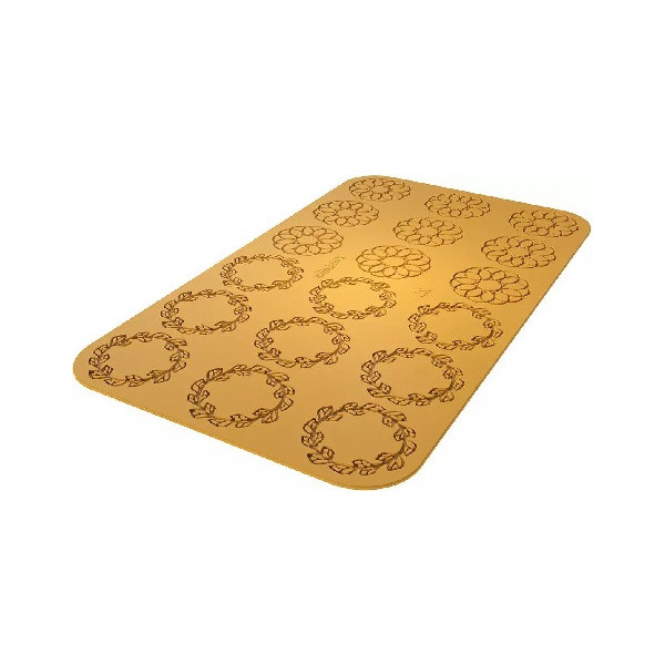 Stampo Corona, in silicone giallo Linea Naturae di Silikomart, per 18 impronte di 2 tipi di ghirlande ideali per decorare preparazioni sia dolci che salate in versione cotte o semifreddi.
