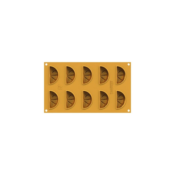 Stampo Limone 14 in Silicone giallo Silikomart Linea Naturae: 10 impronte che richiamano la forma naturale della fetta di Limone, ideali per preparazioni dolci e salate, versione cotte o semifreddi.