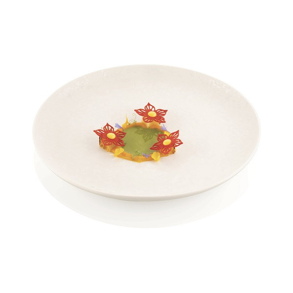 Stampo Botanica, in silicone giallo Linea Naturae di Silikomart, per 34 impronte di 2 tipi di fiori, ideali per decorare preparazioni sia dolci che salate in versione cotte o semifreddi.