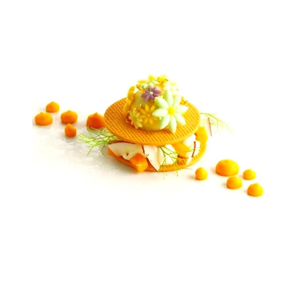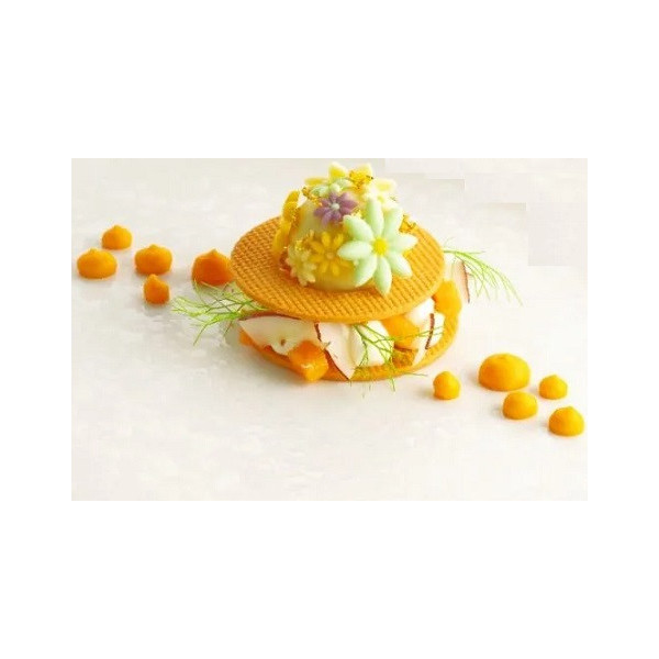 Utilizzo: decorazioni in superficie di dessert, semifreddi, dolci, torte, gelati, con pasta a sigaretta, in zucchero, cioccolato e prodotti da forno.