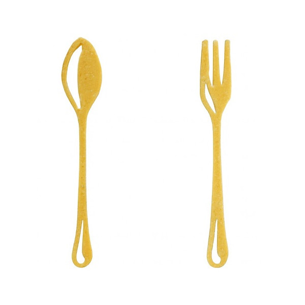 Coperto, linea Naturae, Silikomart: stampo in silicone giallo di 20 tra cucchiai e forchette