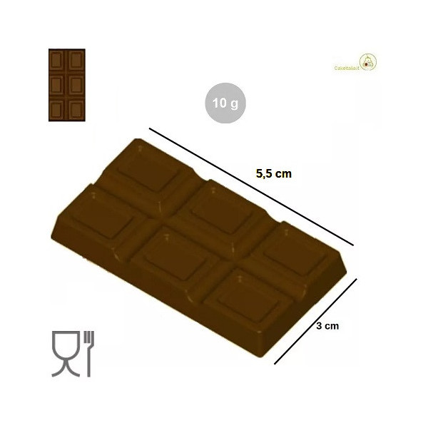 Mini tavoletta 10 g: stampo in policarbonato ideale per preparare per 16 mini blocchi di cioccolato o 16 snack da 10 g di dimensioni 55x30xh6,3 mm.