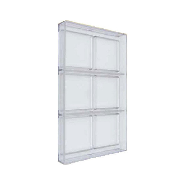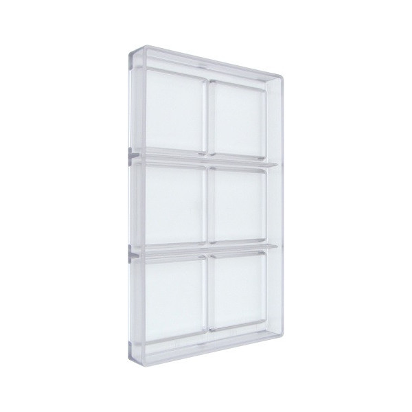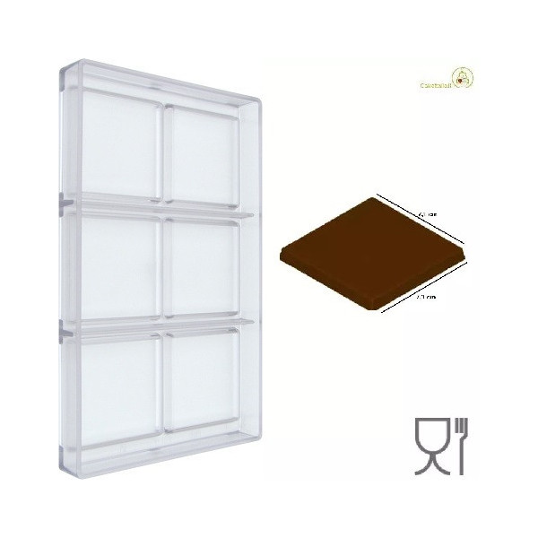 Stampo Cioccolato Tavoletta quadrata liscia dal peso di 40 g, composta da 6 cavità lato 71 mm ed alte 7 mm.