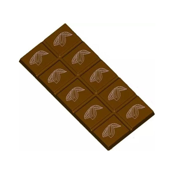 Stampo cioccolato tavoletta rettangolare con decoro Cabossa da 75 g: 3 cavità 145,5x67,5xh7 mm. Ogni tavoletta è suddivisa in 10 quadretti, ideale per preparare 3 tavolette di cioccolato o 3 monoporzioni da 75 g.