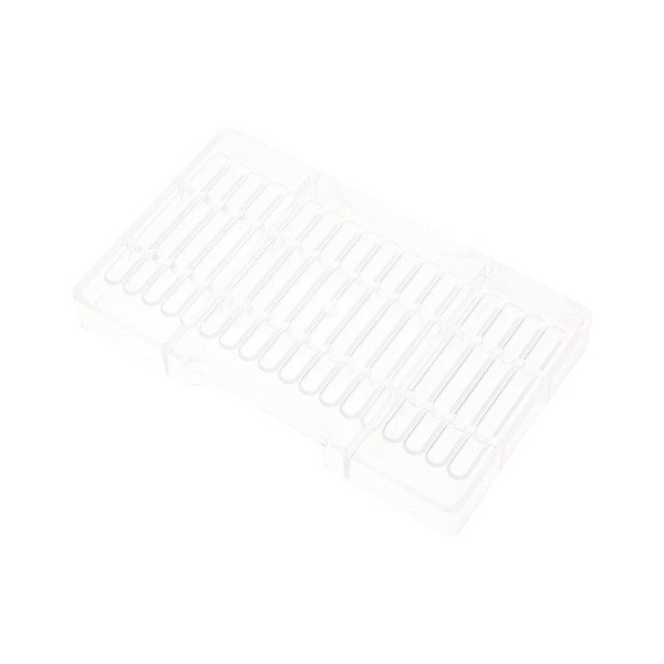 Stampo in policarbonato professionale vi permetterà di realizzare 18 barrette a forma si sigaro da 9 cm nel modo più preciso. Pratico da usare grazie alla forma brevettata dello stampo che permette la presa dello stampo con un unica mano.
