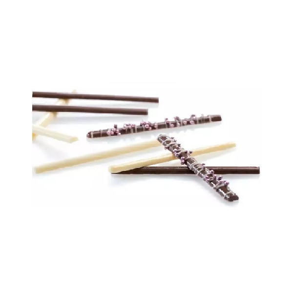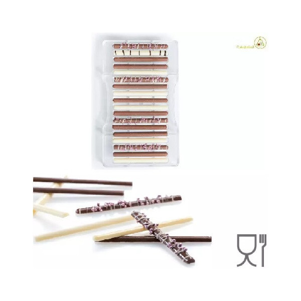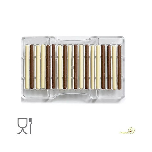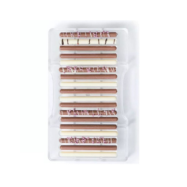 Stampo cioccolatino sigaro, 18 brevettate lunghe 8,5 cm, larghe 0,5 cm in policarbonato professionale, da Decora.