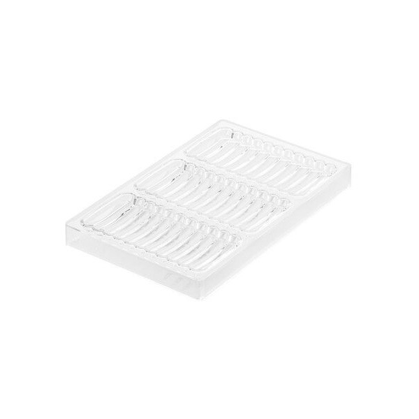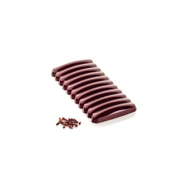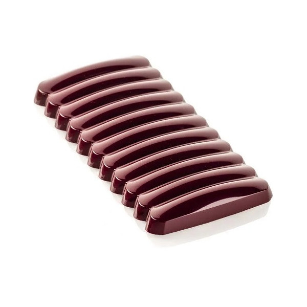 Onda B linea Chocado da Silikomart: stampo in Tritan per 10 barrette di cioccolato con decoro a onde, composta da 10 cavità lunghe 12 cm, larghe 2 cm ed alte 1,5 cm e volume 26 ml.