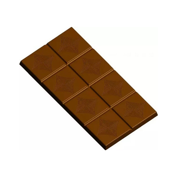 Tavoletta rettangolare 100 g con decori: stampo in policarbonato per 3 tavolette cioccolato di dimensioni 16x8xh0,68 cm, peso 100 g suddivisa in 8 quadretti decorati.