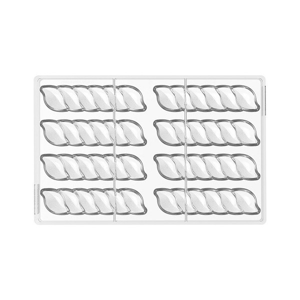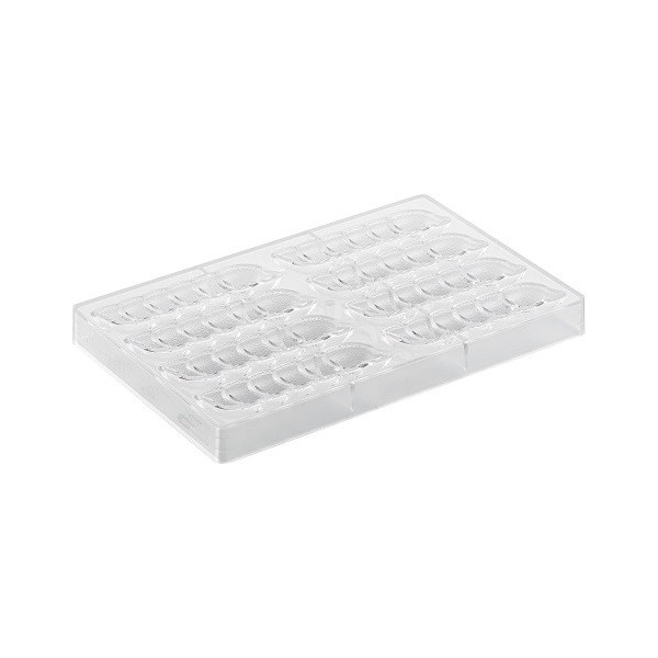 Riflesso P CH039 linea Chocado Silikomart: stampo cioccolatini in Tritan per 24 praline di cioccolato, suddivise per la lunghezza in due parti simmetriche un lato liscio e uno il riflesso texturizzato.