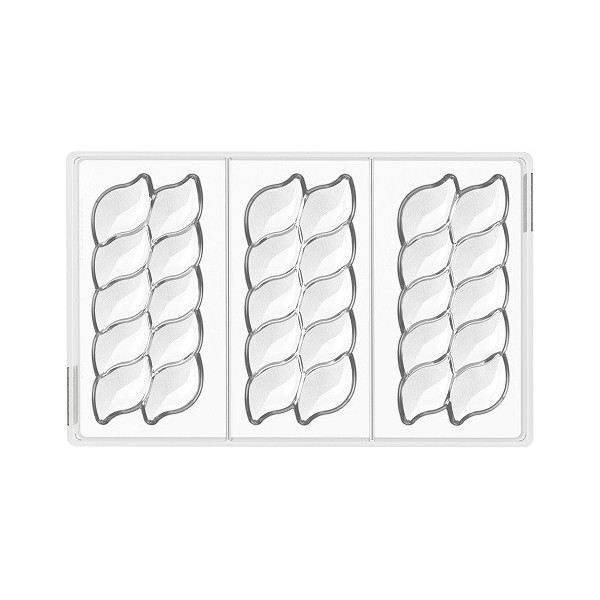 Riflesso T CH041 linea Chocado Silikomart: stampo cioccolato in Tritan per 3 tavolette di cioccolato, con parti simmetriche un lato liscio e uno il riflesso texturizzato.