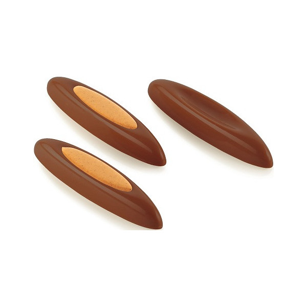 Sogno B CH043 linea Chocado Silikomart: stampo cioccolato in Tritan per 10 barrette di cioccolato, dalla forma elegante ed affusolata, con una cavità superiore, che eventualmente può essere o meno riempita.