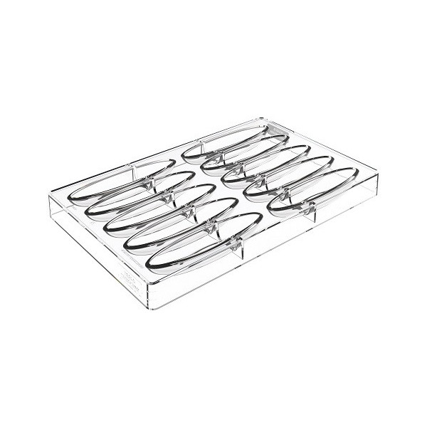 Sogno P CH042 linea Chocado Silikomart: stampo cioccolatini in Tritan per 24 praline di cioccolato, dalla forma elegante ed affusolata, con una cavità superiore, che eventualmente può essere o meno riempita.