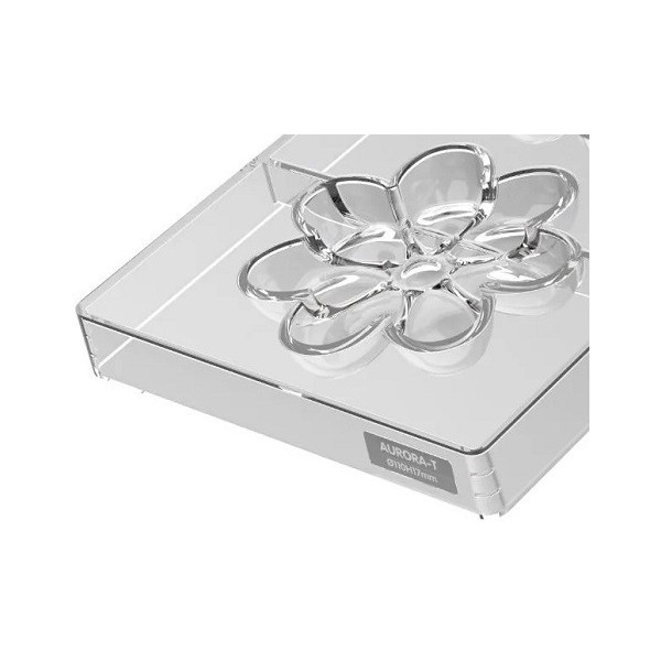 Aurora T Silikomart: stampo in Tritan per 2 tavolette di cioccolato a forma di fiore, CH049 della linea Chocado, composta da 2 cavità ø11 cm ed altezza 1,7 cm e volume 85 ml.