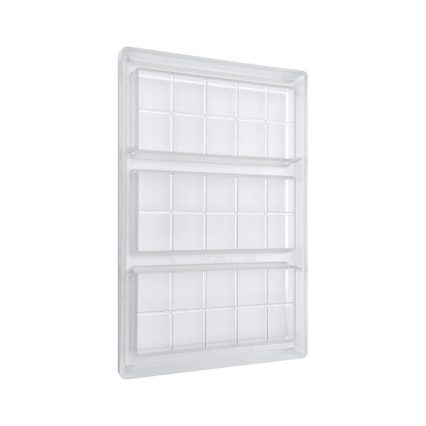 Stampo in policarbonato, composto da 3 cavità rettangolari, di lato 15x7xh2 cm, per 3 tavolette piene di peso 200/240 g.