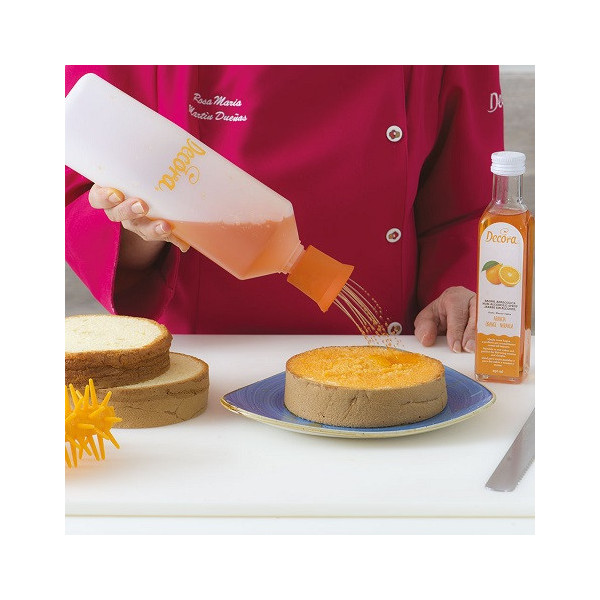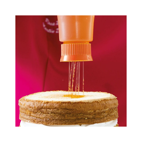 Bottiglia per sciroppo in plastica semitrasparente, da utilizzare per bagnare il pan di spagna delle tue torte.