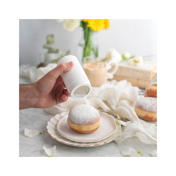 Spargizucchero Decora (Ø6×H11cm) – Contenitore in Plastica con Setaccio in Acciaio Inox