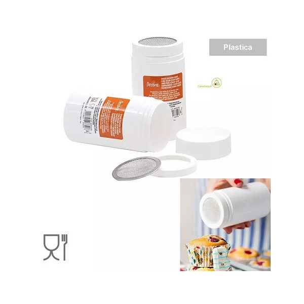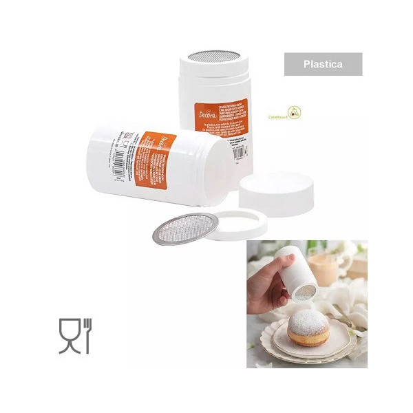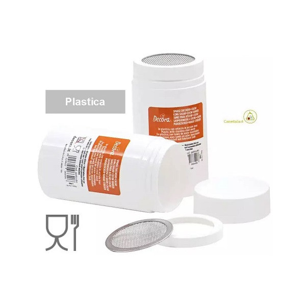 Spargi-zucchero Decora, è in plastica per alimenti, con setaccio in acciaio inox e tappo per chiusura ermetica.