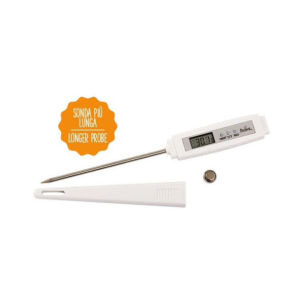 Termometro digitale Decora con sonda lunga in acciaio inox ad inserimento, semplice da usare in cucina con range di misurazione -50° +300°C, la lunghezza dell'ago è di 11,5 cm