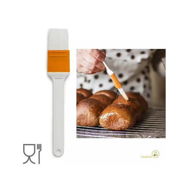 Pennello professionale, adatto al contatto con alimenti, ideale per ungere la pasta, infarinare e oliare gli stampi. Resistente fino a 230 °C.