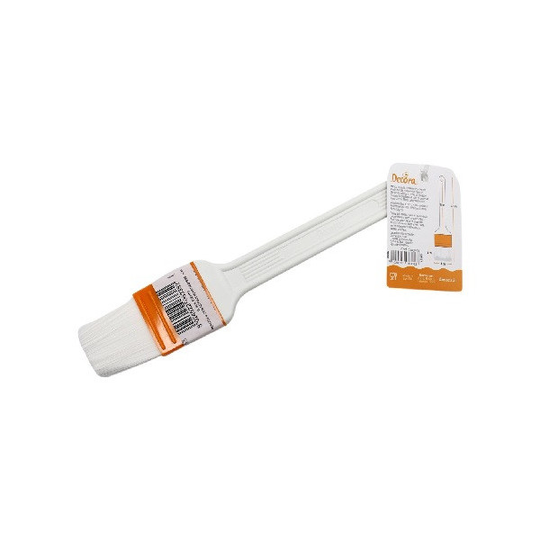 Pennello da 4 o 6 cm Decora; manico in plastica e setole in poliestere fini e morbide, per alimenti, ideale per ungere la pasta, infarinare e oliare gli stampi. Resistente fino a 230° C.