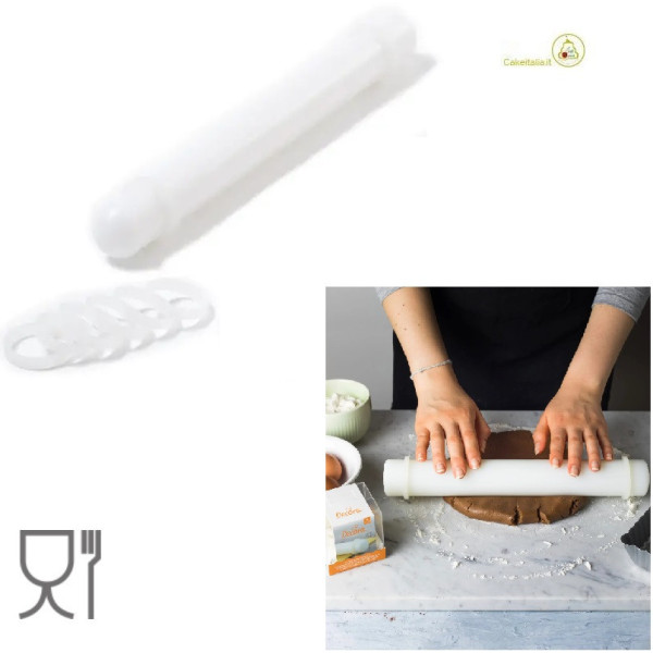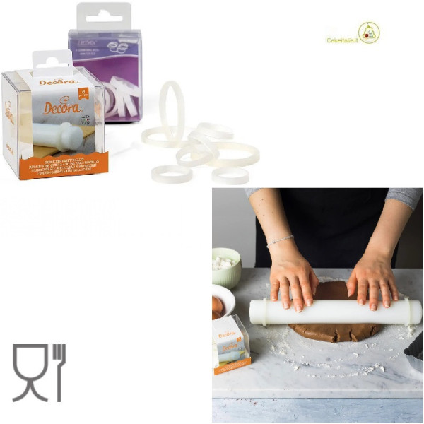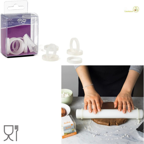 Spessori o guide per mattarello da Decora: spessori di diametro 2,5 o 4,5 cm, ideali per dare spessore uniforme a tutti i tuoi impasti. Nella confezione guide di spessore differente.