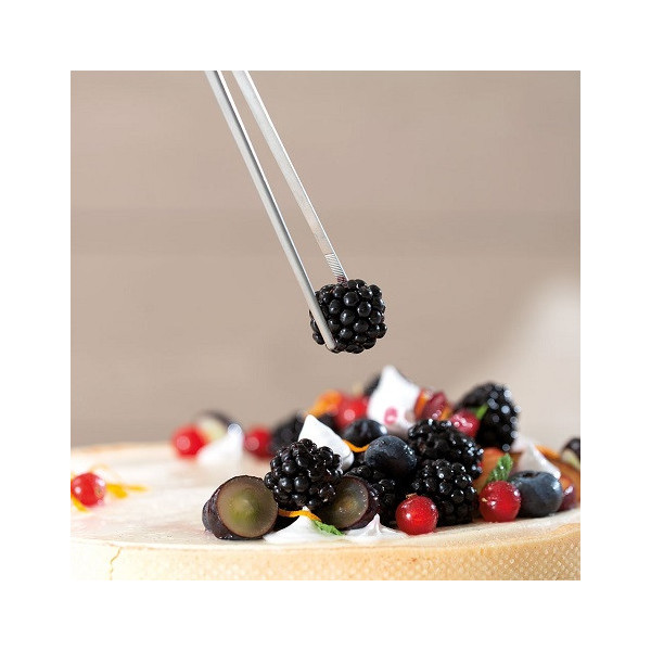 Usala la pinza angolare in acciaio, sia per garantire l'igiene sia per azioni di precisione come: impiattare, decorare dolci o preparare cocktail, Resiste al freddo e alle alte temperature.